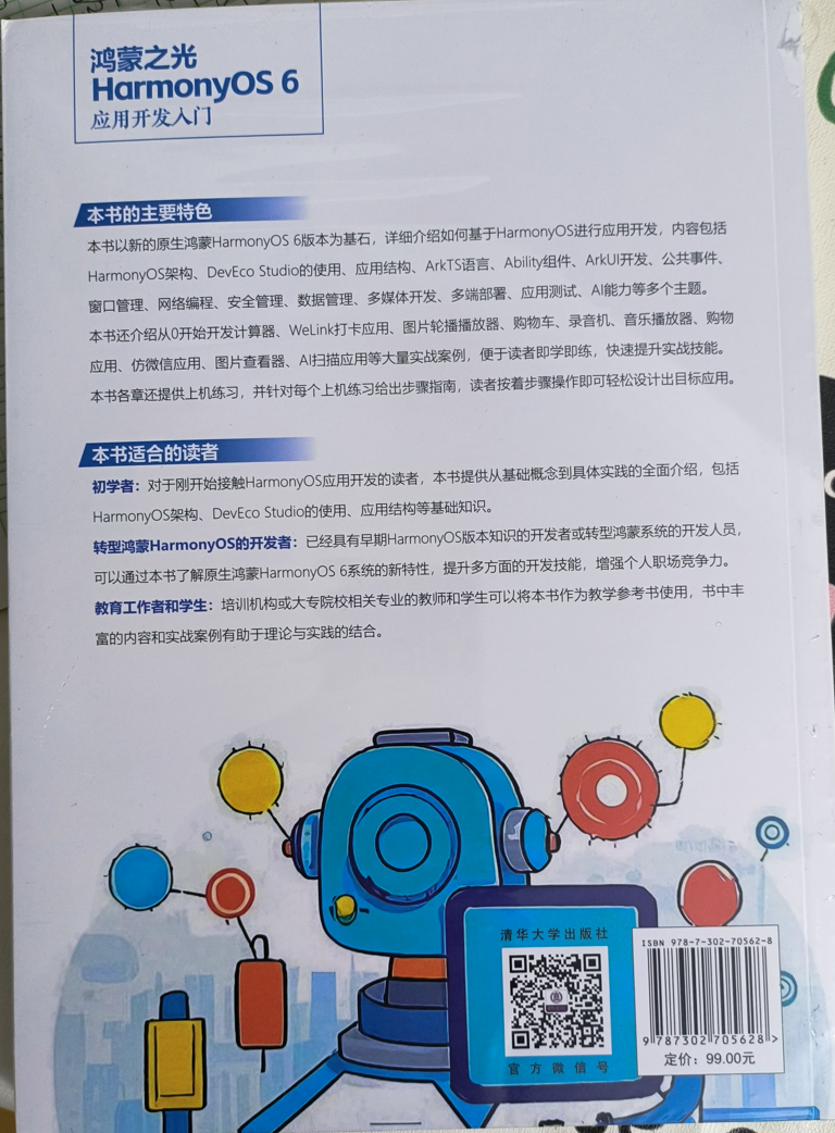- 转型鸿蒙HarmonyOS的开发者:已经具有早期HarmonyOS版本知识的开发者或转型鸿蒙系统的开发人员,可以通过本书了解原生鸿蒙HarmonyOS 6系统的新特性,提升多方面的开发技能,增强个人职场竞争力。