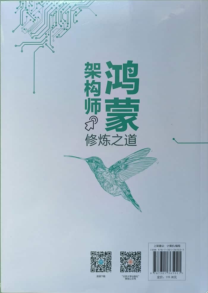 右下角貌似是一只蜂鸟。蜂鸟寓意着坚韧与勇气:蜂鸟体型虽小,却拥有惊人的飞行能力,能悬停、倒飞,象征着以微小之躯挑战巨大困难的精神。本书封面配以蜂鸟,体现了在鸿蒙架构师修炼道路上,需要极大的勇气与自我价值的肯定。