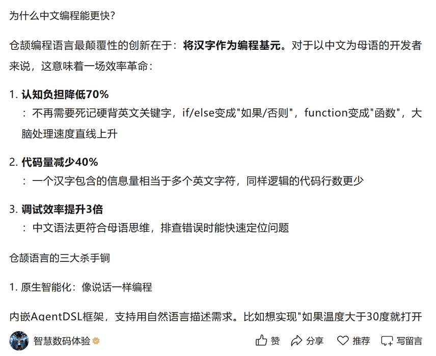 - 自媒体与社交平台:为博流量,部分账号发布“仓颉=中文编程”的标题党内容,利用“国产替代”情绪制造话题,导致错误信息病毒式传播。