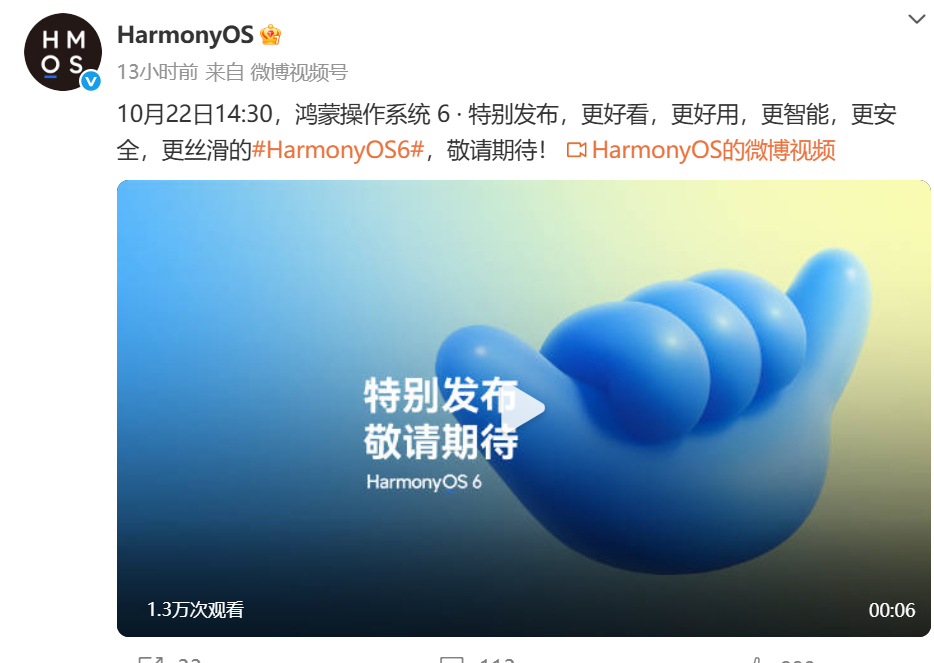 HarmonyOS官宣:10月22日14:30,鸿蒙操作系统6特别发布!