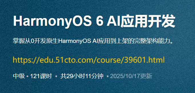 - “鸿蒙HarmonyOS 6 AI应用开发”(https://edu.51cto.com/course/39601.html)